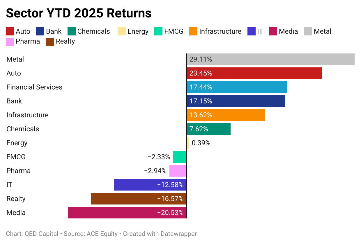 Financial Stability – Financials and Banks delivered steady returns, supporting overall market breadth.